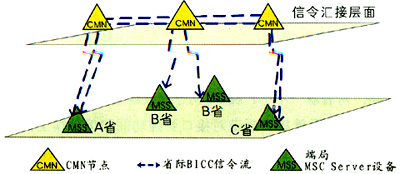 因此引入CMN(Call Media Node,呼叫協(xié)調(diào)節(jié)點),主要完成MSC Server之間的信令鏈路匯聚和被叫號碼分析功能,以實現(xiàn)BICC信令在MSC Server之間的傳遞。CMN不需要負責任何承載面媒體網(wǎng)關的資源控制。CMN一般會采用分級匯接的方式來構建,具體設置方案與3G網(wǎng)絡的規(guī)模以及MSC Server的設置有關。