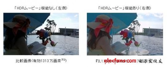 HDR拍攝功能實例:左邊為原有的背照式CMOS傳感器拍攝,右邊為Exmor RS堆棧式CMOS傳感器拍攝