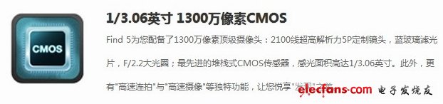 這次發(fā)布的OPPO Find 5,采用的就是堆棧式CMOS,出自索尼,可以說基本是就是Exmor RS CMOS系列了?,F(xiàn)在為止,只有索尼能生產(chǎn)堆棧式CMOS的攝像頭,聽說下一代旗艦索尼Yuga上將會配備堆棧式CMOS攝像頭,但畢竟還未發(fā)布,因此,F(xiàn)ind 5可以說是第一款采用全新堆棧式CMOS攝像頭的手機,即使加上“前無古人后無來者”“開創(chuàng)手機攝像頭技術(shù)新紀(jì)元”這些華麗的字眼,也并不為過。當(dāng)然,以上這些都是從技術(shù)角度講的,F(xiàn)ind 5剛剛發(fā)布,目前還未見過實際拍攝效果,我們暫時還無法給Find 5的拍照能力下結(jié)論。不過不管怎樣,F(xiàn)ind 5已經(jīng)邁出了第一步,其意義算得上是劃時代。