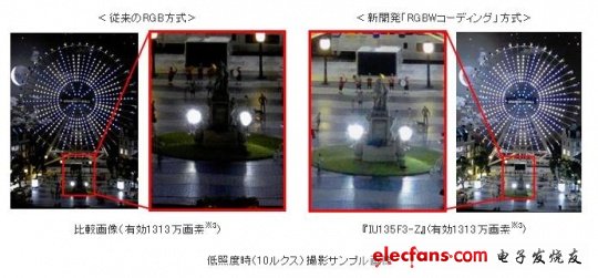 RGBW編碼技術(shù)實例:拍攝的圖片為10lux低照度,左邊為原有的背照式CMOS傳感器拍攝,右邊為Exmor RS堆棧式CMOS傳感器拍攝