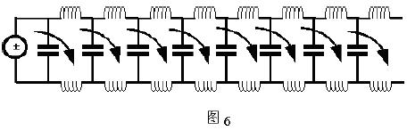 ??? 圖3所示的PCB條狀雙線等效電路中,在直流電源接入瞬間,從左到右,電壓和電流是以依次向相鄰電容充電,然后向次級(jí)電容放電的過程形式傳播的,稱為電流行波。
