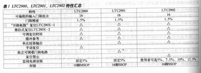 LTC2900、LTC2901、LTC2902微功耗四電壓監(jiān)視器件在多電壓監(jiān)視應(yīng)用中帶來了很大的靈活性、可靠性和精確性,僅需一個器件即可滿足目前和未來的大多數(shù)應(yīng)用場合。可以通過編程實現(xiàn)輸入電壓組合、正負(fù)調(diào)節(jié)門限。在工作溫度范圍內(nèi),比較器具有1.5%的精度以及內(nèi)置抗噪功能。即使VCC降到1V,復(fù)位邏輯仍然可以保持正確,并具有開路耗散輸出和推拉輸出兩種模式。通過外部電容,可以實現(xiàn)不同的復(fù)位定時和看門狗定時。電源裕量具有實時電壓門限選擇和一個隨選復(fù)位非使能的特征。
