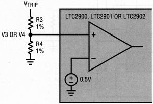 圖1 使用LTC2900-2實現(xiàn)4線電壓監(jiān)視的典型應(yīng)用