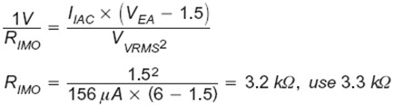 在低線壓條件下,IIAC 等于 156μA(如果低線壓等于 85V,IIAC 被設(shè)定為 270V 時的 500μA),VEA 為其 6V 的最大值,VVRMS 為 1.5V。因此 RIMO 等于 3.2 kΩ。