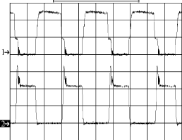 CH1 5V CH2 100A M 5μ s CH1: ugs CH2: uds ( b) 空 載 功 率 開(kāi) 關(guān) 漏 源 電 壓 波 形