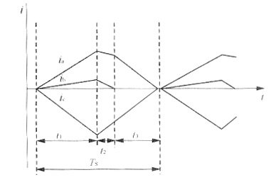 圖19? 兩個(gè)三相單開關(guān)PFC交錯(cuò)并聯(lián)電路電流示意圖 ??? 為了減小開關(guān)管的電流應(yīng)力,可用三只開關(guān)管取代全橋上半臂或下半臂的整流二極管,另外半臂則不能使用普通整流二極管,而要用快恢復(fù)二極管,電路如圖20所示[11]。三只開關(guān)管用同一個(gè)驅(qū)動(dòng)信號(hào),電感電流工作在DCM下。與圖8電路相比該電路的優(yōu)點(diǎn)是:每只開關(guān)管的平均電流應(yīng)力只有圖8電路中開關(guān)管的1/3,半導(dǎo)體器件的損耗也比較小(因在開關(guān)關(guān)斷時(shí),電流只通過二個(gè)半導(dǎo)體器件,而圖8電路則通過三個(gè)半導(dǎo)體器件)。缺點(diǎn)是:使用了三只開關(guān)管和三只快速恢復(fù)二極管,成本較高,電路仍工作在DCM下,THD較大。