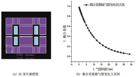 場有限元分析軟件對松耦合變壓器進(jìn)行參數(shù)化分析,討論初級側(cè)和次級側(cè)相對位置變化對耦合系數(shù)的影響。采用基于Simplorer軟件系統(tǒng)場路耦合聯(lián)合仿真的方法,對松耦合變壓器性能進(jìn)行分析。得到耦合系數(shù)隨氣隙和偏移的變化曲線,獲取系統(tǒng)電流電壓參