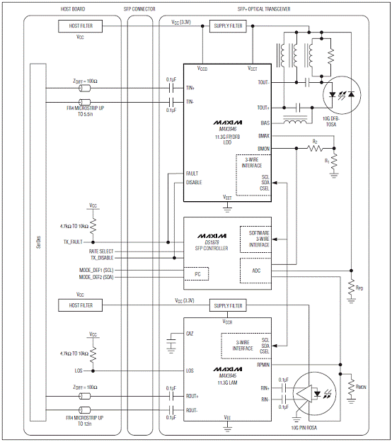 MAX3946 1.0625Gbps至11.3Gbps、SFP+激光器驅(qū)動器,容許激光器阻抗失配
