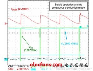 出現(xiàn)一些人耳可聽到的噪聲。能夠使用一顆簡單的電阻來改善這功能。其次,在啟動序列期間,PFC段也可能呈現(xiàn)出過大的過沖??梢栽诜答伕袦y網(wǎng)絡(luò)中放置一顆電容來限制或抑制這過應(yīng)力。即便是在電源設(shè)計的極晚階段,這兩種調(diào)整方法都易于實施。