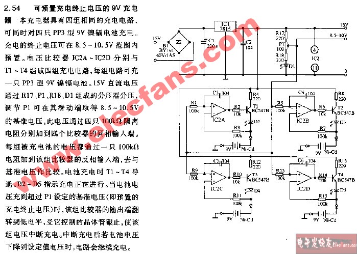 9V小型電池自動充電器電路