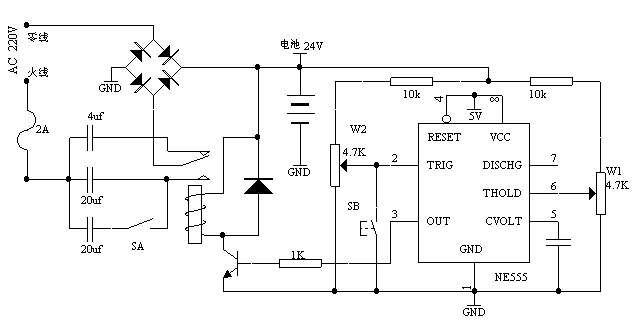 這是一款蓄電池自動(dòng)充電器,它能對(duì)電池電壓連續(xù)監(jiān)視。當(dāng)電池電壓降到低限值時(shí)自動(dòng)通電充電;充電充足時(shí)能自動(dòng)斷電停止充電;需要充電而未通電供電時(shí)能發(fā)出提示聲響。另外還備有手動(dòng)充電開關(guān),以備隨時(shí)補(bǔ)充充電。
