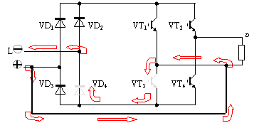 N→VD1→VT2→R→VT3→VD4→L