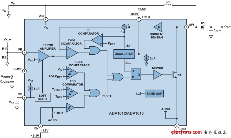 -- ADI 公司的 ADP2302/ADP2303開(kāi)關(guān)調(diào)節(jié)器具有內(nèi)部補(bǔ)償功能,能夠在保證電源轉(zhuǎn)換