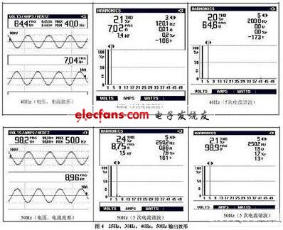 d)輸出電壓波形在額定負(fù)載時(shí)尚好,低于25Hz以下畸變突出;