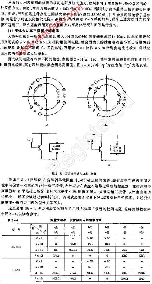 大功率晶體三極管的檢測 利用萬用表檢測中、小功率三極管的極性、管型及性能的各種方法,對檢測大功率三極管來說基本上適用。但是,由于大功率三極管的工作電流比較大,因而其PN結(jié)的面積也較大。PN結(jié)較大