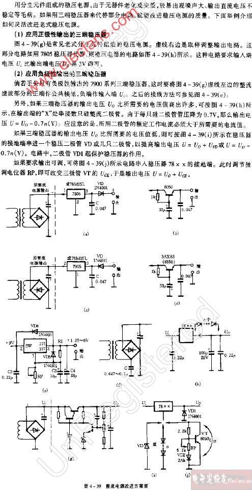 46 穩(wěn)壓管穩(wěn)壓電路接一個(gè)同相比例運(yùn)算電路就構(gòu)成一個(gè)串聯(lián)型穩(wěn)壓電源電路。簡(jiǎn)單串聯(lián)型穩(wěn)壓電源電路如下: