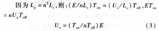 式中:E——整流電壓;Lp——變壓器初級繞組電感;Ton——場效應(yīng)管導(dǎo)通時間。