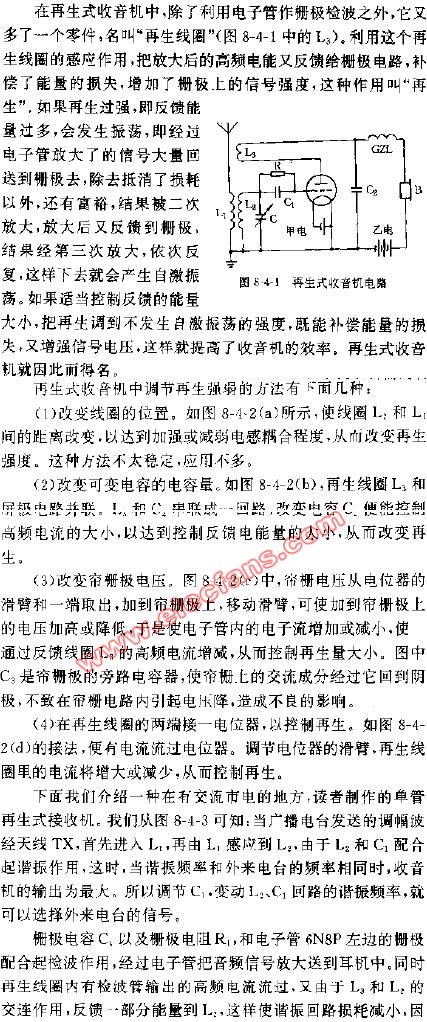 交流二管再生式收音機原理圖