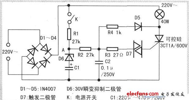 以下是一個(gè)簡(jiǎn)單電路,基本可以實(shí)現(xiàn)停電時(shí)燈亮的功能,電路圖如下: