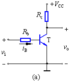 我們以如圖a所示的無(wú)靜態(tài)偏置電流共射電路為例來(lái)說(shuō)明。
