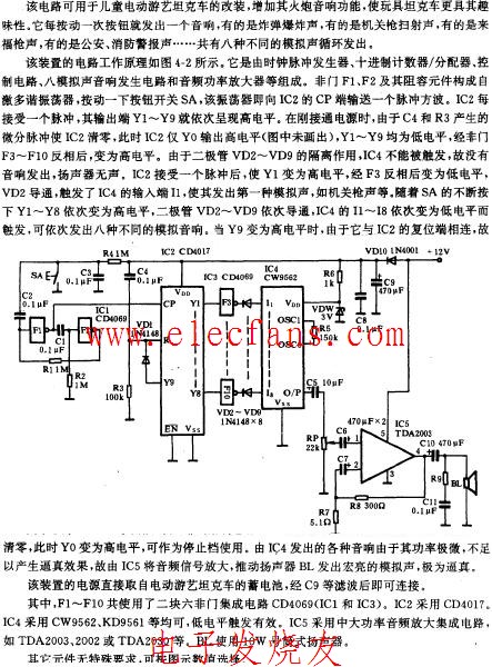 電動(dòng)游戲藝坦克八模擬聲控制器電路原理圖