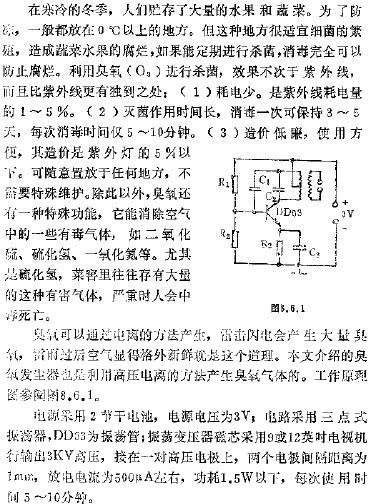 空氣電離后產(chǎn)生的臭氧和正負(fù)離子有很強的殺菌作用,本文介紹的家用電子保鮮器就是利用這一原理設(shè)計的,其電路如圖1-33所示。