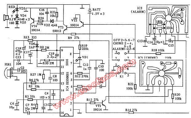SNS-200PI熱釋電紅外報(bào)警器電路圖