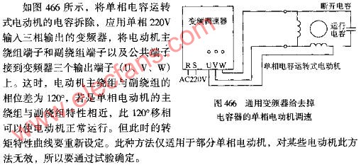 通用變頻器給去掉電容器的單相電動(dòng)機(jī)調(diào)速圖
