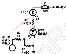 這個(gè)只能用于接通的觸摸開關(guān)可以用電方式觸發(fā)傳導(dǎo)狀態(tài),但只能用機(jī)械開關(guān)復(fù)位,當(dāng)用手指接觸觸摸電極時(shí),SCR導(dǎo)通,LED1發(fā)光。