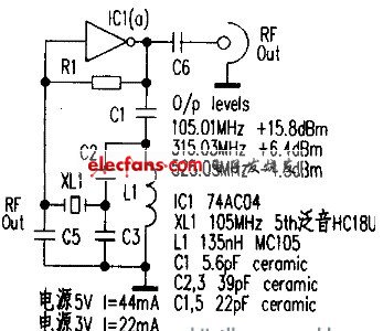 70MHz晶體振蕩電路圖