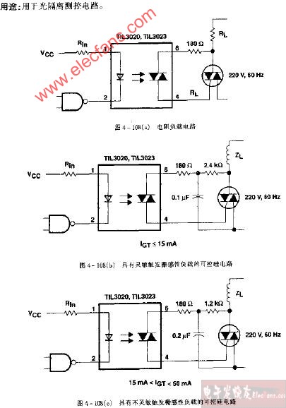 TIL3020~TIL3023具有靈敏觸發(fā)概感型負(fù)載的可控硅電路圖