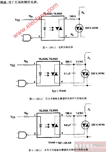 TIL3020~TIL3023具有不靈敏觸發(fā)概感型負(fù)載的可控硅電路圖