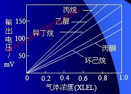 5025 不同可燃氣體的燃燒值不同,傳感器測(cè)量的是燃燒引起的電阻變化而不是濃度的變化,故此不同可燃氣體盡管在相同的濃度下讀數(shù)也可能不同。