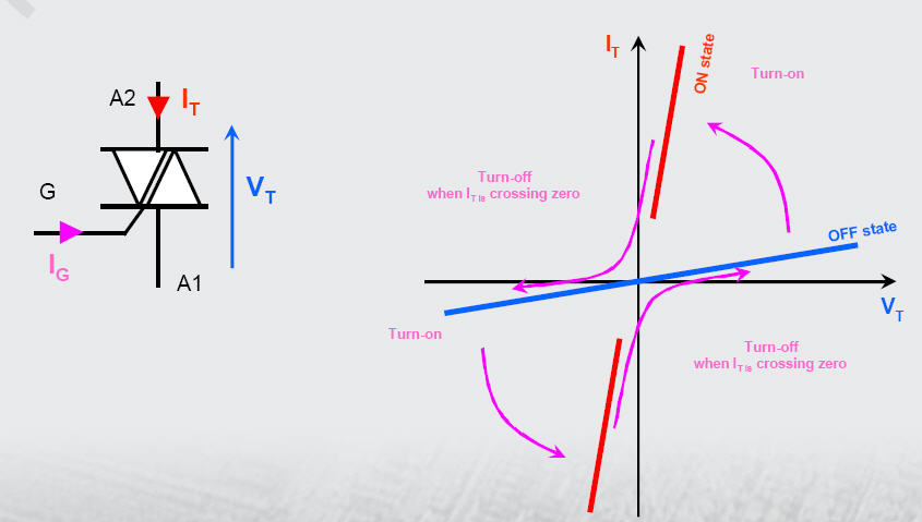 ????我們知道,可控硅的一個(gè)導(dǎo)通周期可以有四步: