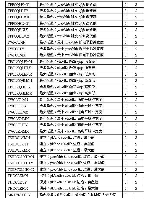 標(biāo)準(zhǔn)門的延遲參數(shù):