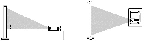 在投影機的日常使用中,投影機的位置盡可能要與投影屏幕成直角才能保證投影效果(如下圖) 如果無法保證二者的垂直,畫面就會產生梯形。在這種情況下,用戶需要使用“梯形校正功能”來校正梯形,保證畫面成標準的矩形。