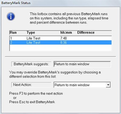 經(jīng)BatteryMark測試,這塊6芯5600mAh的鋰離子電池在“均衡模式”下可提供給本機7小時48分鐘的續(xù)航時間,在“eco”節(jié)能模式下續(xù)航時間可達8小時36分。