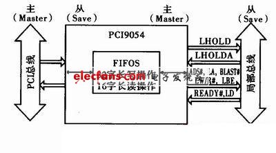 ??? PCI9054可以看做一座建立在CPCI總線和本地用戶(hù)局部總線之間的橋梁。因?yàn)镻CI9054具有6個(gè)可編程FIFO存儲(chǔ)器進(jìn)行數(shù)據(jù)緩存,從而保證兩者之間數(shù)據(jù)傳輸?shù)恼_性和實(shí)時(shí)性。并且PCI9054允許其中任意一端作為主控設(shè)備去控制總線,同時(shí)另外一端作為目標(biāo)設(shè)備去響應(yīng)總線。