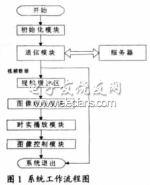 本系統(tǒng)中的實時流媒體圖像瀏覽需要包括如下模塊:網(wǎng)絡接收模塊、解碼模塊、顯示模塊、操作控制模塊,根據(jù)平臺的結構和工作原理,系統(tǒng)的工作流程如圖1 所示。