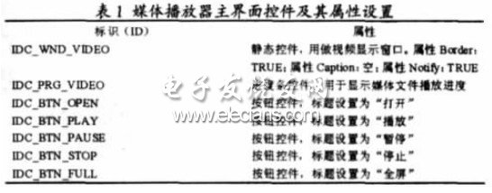 根據(jù)媒體播放器上的樣式,對(duì)話框上的控件及其屬性設(shè)置如表1 所示。
