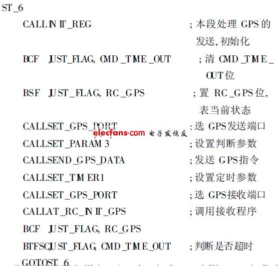 在接收GPS數(shù)據(jù)時(shí),為了區(qū)別GPRS數(shù)據(jù),設(shè)置相關(guān)標(biāo)志位用來(lái)阻止GPRS數(shù)據(jù)的接收,對(duì)于GPS收集到的數(shù)據(jù)先接收后判斷是否合法,這與下面講的GPRS不同(GPRS先判斷后接收不同),通過(guò)分時(shí)操作大大增加了PIC16F877單片機(jī)的利用率。