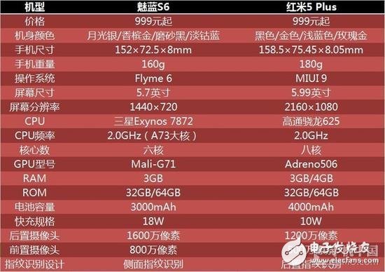 魅藍(lán)S6/紅米5 Plus參數(shù)對(duì)比