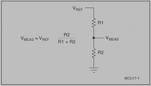 觸摸屏包含上下疊合的兩個(gè)透明層,四線(xiàn)和八線(xiàn)觸摸屏由兩層具有相同表面電阻的透明阻性材料組成,五線(xiàn)和七線(xiàn)觸摸屏由一個(gè)阻性層和一個(gè)導(dǎo)電層組成,通常還要用一種彈性材料來(lái)將兩層隔開(kāi)。當(dāng)觸摸屏表面受到的壓力(如通過(guò)筆尖或手指進(jìn)行按壓)足夠大時(shí),頂層與底層之間會(huì)產(chǎn)生接觸。所有的電阻式觸摸屏都采用分壓器原理來(lái)產(chǎn)生代表X坐標(biāo)和Y坐標(biāo)的電壓。如圖3,分壓器是通過(guò)將兩個(gè)電阻進(jìn)行串聯(lián)來(lái)實(shí)現(xiàn)的。上面的電阻(R1)連接正參考電壓(VREF),下面的電阻(R2)接地。兩個(gè)電阻連接點(diǎn)處的電壓測(cè)量值與下面那個(gè)電阻的阻值成正比。 圖3