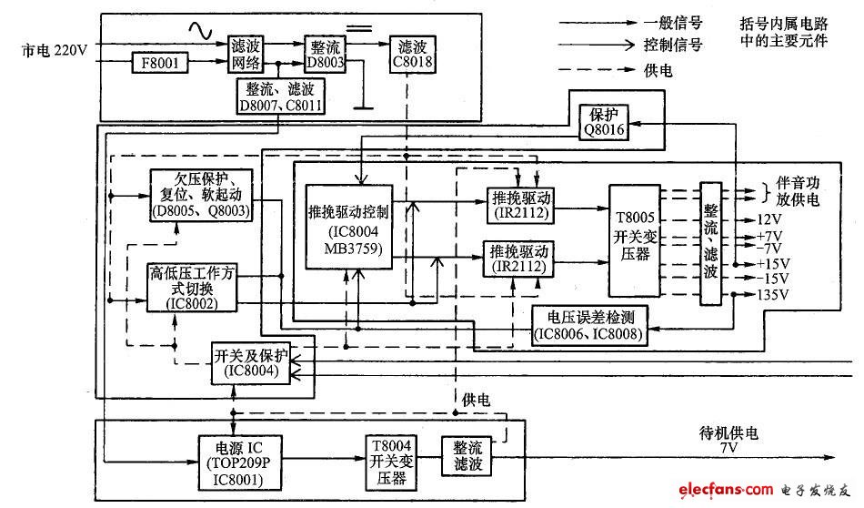 圖1 TCL-HiD432/522 型背投彩電電源電路構(gòu)成方框圖