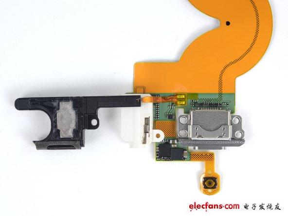 將音量鍵、麥克風(fēng)、LED閃光燈、電源鍵的帶狀纜線從后殼上拆下