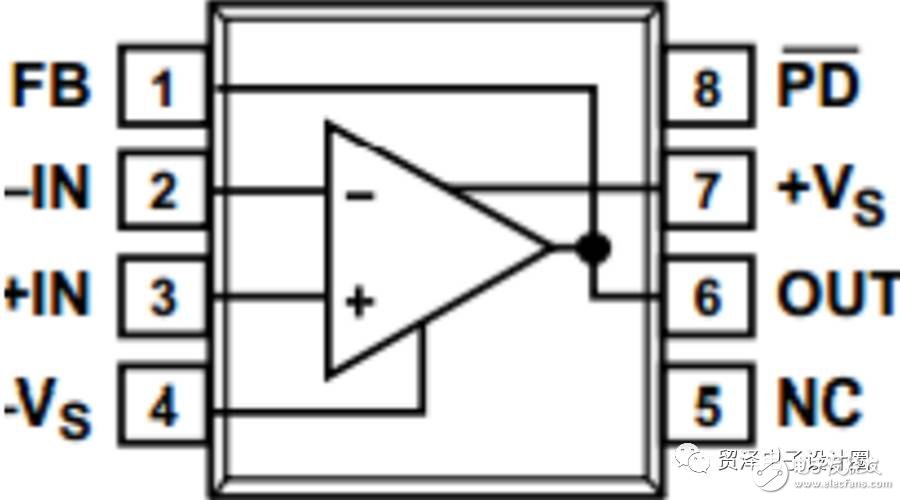 在多數(shù)系統(tǒng)中,光電二極管電容占總輸入電容的絕大部分,但某些應(yīng)用在選擇極低輸入電容的運(yùn)算放大器時(shí)需分外仔細(xì)。為了解決這個(gè)問題,某些運(yùn)算放大器提供特殊的引腳排列,以降低輸入電容。例如,圖5顯示ADA4817-1s引腳排列,可將運(yùn)算放大器輸出路由至反相輸入的相鄰引腳。