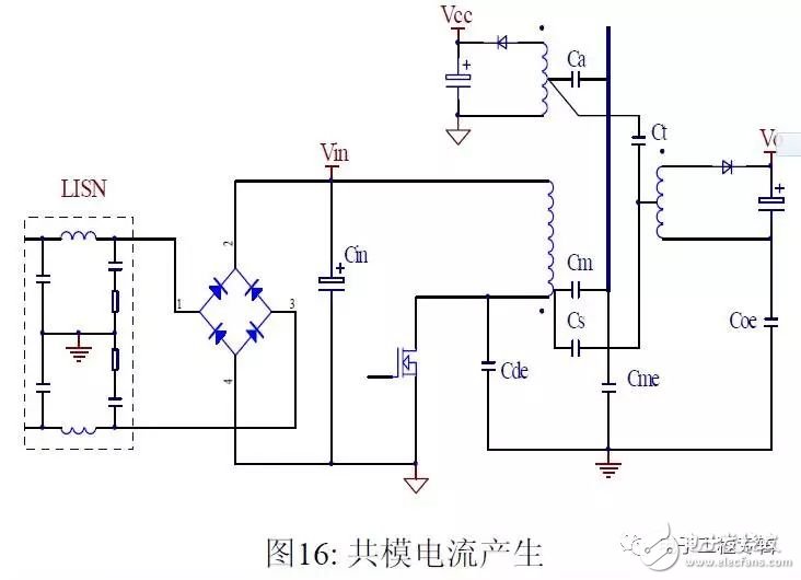 ④ 通過Ct 和Coe產(chǎn)生共模電流。