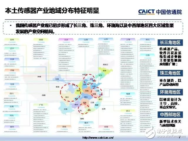 隨后,許志遠(yuǎn)副所長(zhǎng)介紹了智能傳感器產(chǎn)業(yè)地圖,并表示當(dāng)前我國(guó)智能傳感器產(chǎn)業(yè)生態(tài)比較完備,設(shè)計(jì)、制造、封測(cè)等重點(diǎn)環(huán)節(jié)均有骨干企業(yè)布局,運(yùn)動(dòng)、壓力、指紋、CMOS等主流產(chǎn)品類型均實(shí)現(xiàn)覆蓋,且已初步形成了長(zhǎng)三角、珠三角、環(huán)渤海以及中西部地區(qū)四大區(qū)域集聚發(fā)展的產(chǎn)業(yè)空間格局,產(chǎn)業(yè)地域分布特征明顯。