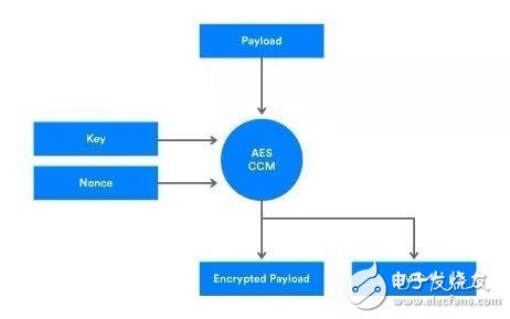 2顯示了可以來自藍牙網(wǎng)狀網(wǎng)絡(luò)層或上層傳輸層的明文有效載荷,由具有輸入加密密鑰,隨機數(shù)和明文有效載荷的AES-CCM處理。輸出加密的有效載荷和MIC。