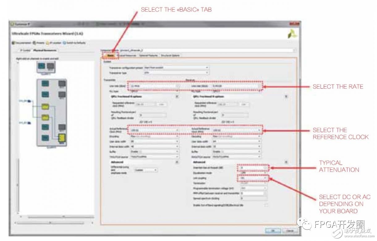 除了錘子模式測試、錯誤插入和累積以外,還可在運行中更改很多串行/解串行器(SerDes)特性和BCDR本身的很多特性,例如數(shù)字帶寬。對于不熟悉FPGA技術(shù)的用戶來說,SerDes配置則是另一個會使他們感到困惑的部分,因此BCDR框架提供使用說明,分步介紹如何配置SerDes,以協(xié)助用戶設(shè)立PONOLT接口。圖3為「GT(Gigabit Transceiver)導(dǎo)向GUI」示意圖,顯示框架如何指導(dǎo)配置,以及如何避免硬件復(fù)雜性。